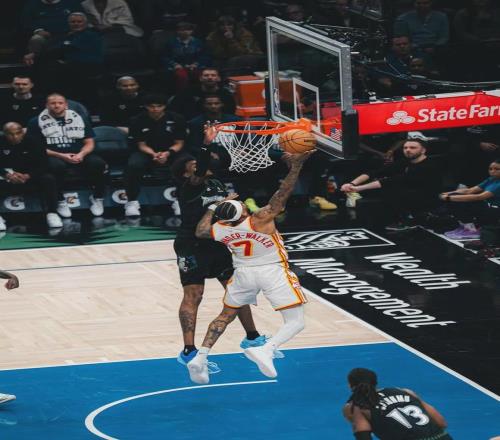 本赛季在进攻端爆发之前,沃克在防守端的能力更受森林狼重视。当他在场时,老鹰的防守效率高居联盟第8。